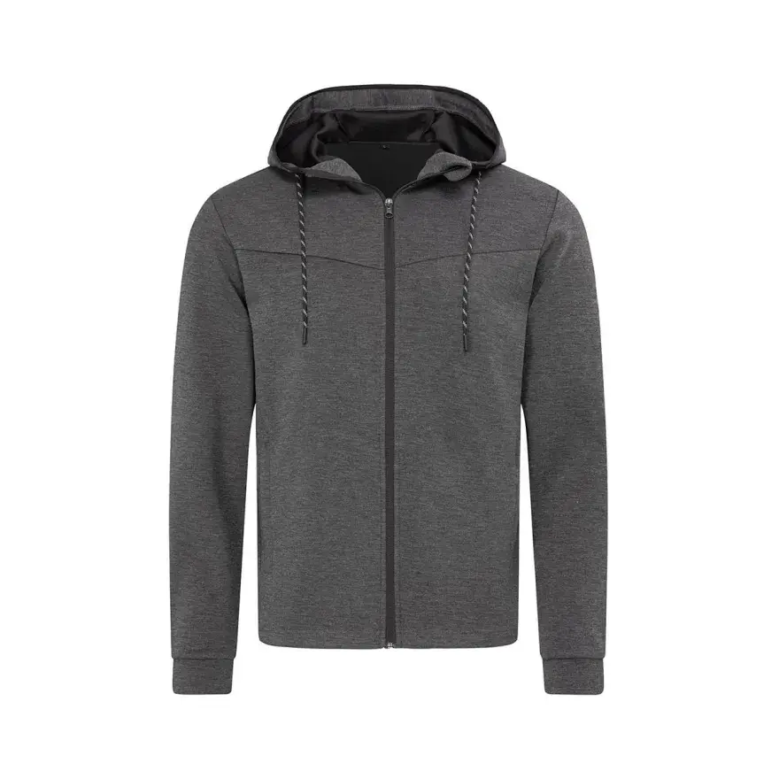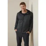 Other Features: eco-friendly functional fabric, made from recycled plastic bottles (8 per jacket), metal eyelets for drawcord (nickel-free), scuba hood with elastic binding and 2-colour drawcord, 2 side pockets with hidden zippers, zipper with metal puller (nickel-free), decorative flatlock seams, self-fabric cuffs, neck tape, side seams, premium woven size label in the collar, tear-away care label in the side seam