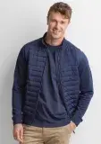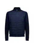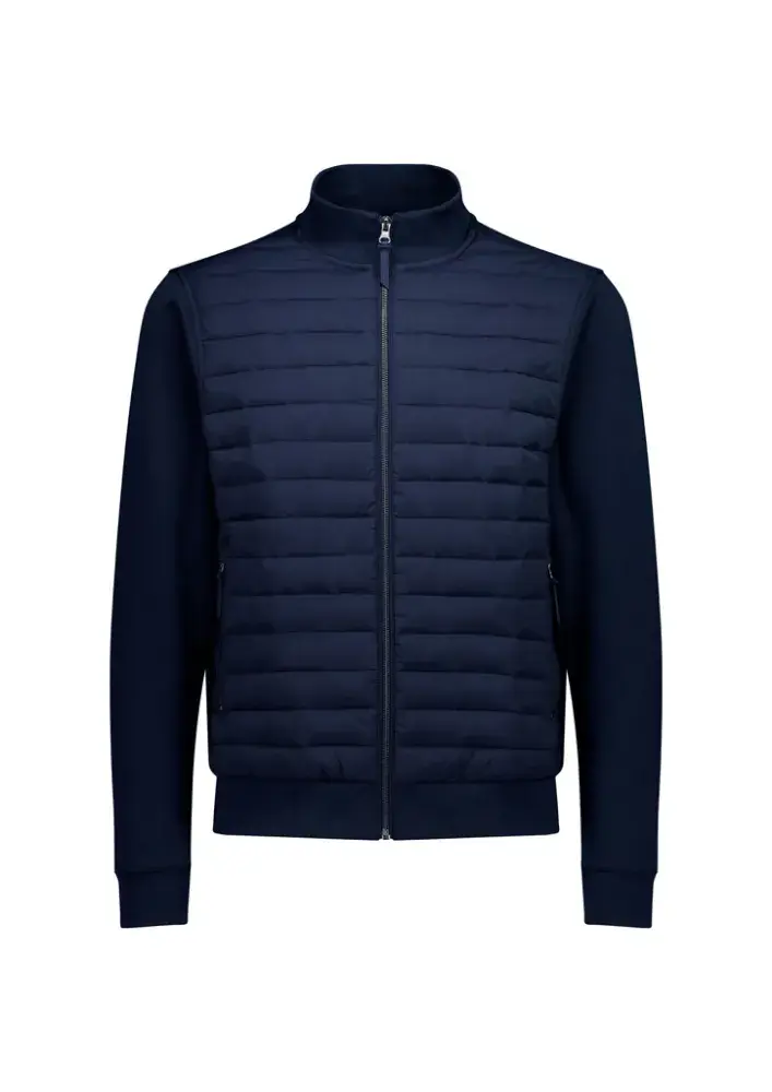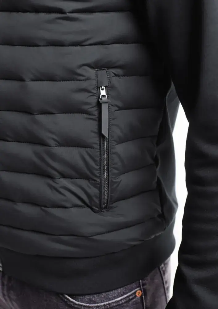 Quilted panel: 89% Polyamide, 11% Elastane, 70 GSM; Knit panel: 51% Cotton, 49% Polyester, 305 GSM; Lining: 100% Polyester, 68 GSM; Polyfil 220 GSM; Rib: 95% Polyester 5% Elastane, 530 GSM