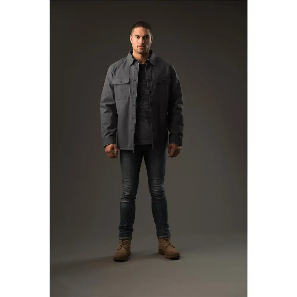 Rugged and highly durable, with a water-repellent finish, sherpa fleece lining and light thermal fill for added warmth. This workwear-ready jacket features double chest pockets, self fabric collar, a contemporary fashion-forward design and embroidery access for decoration.