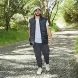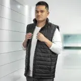Lightweight men's puffer vest with 100% polyester outer shell and lining