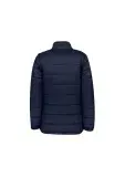 Stand up wind collar with soft knit bound edge and chin guard