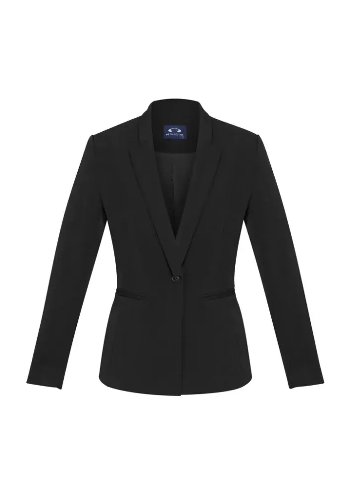 Modern single button style, notched tuxedo lapel, tailored pockets