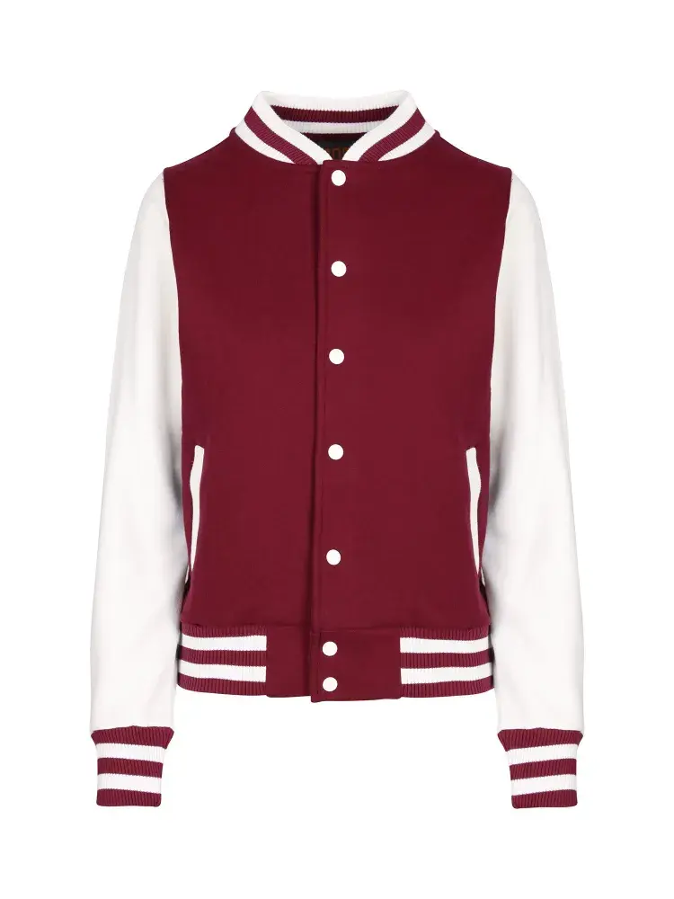 Custom Womens/Junior Varsity Jacket maroon/white (size: 10)