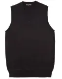 Modern fit, contemporary style, ribbed v-neck, armhome and hem.