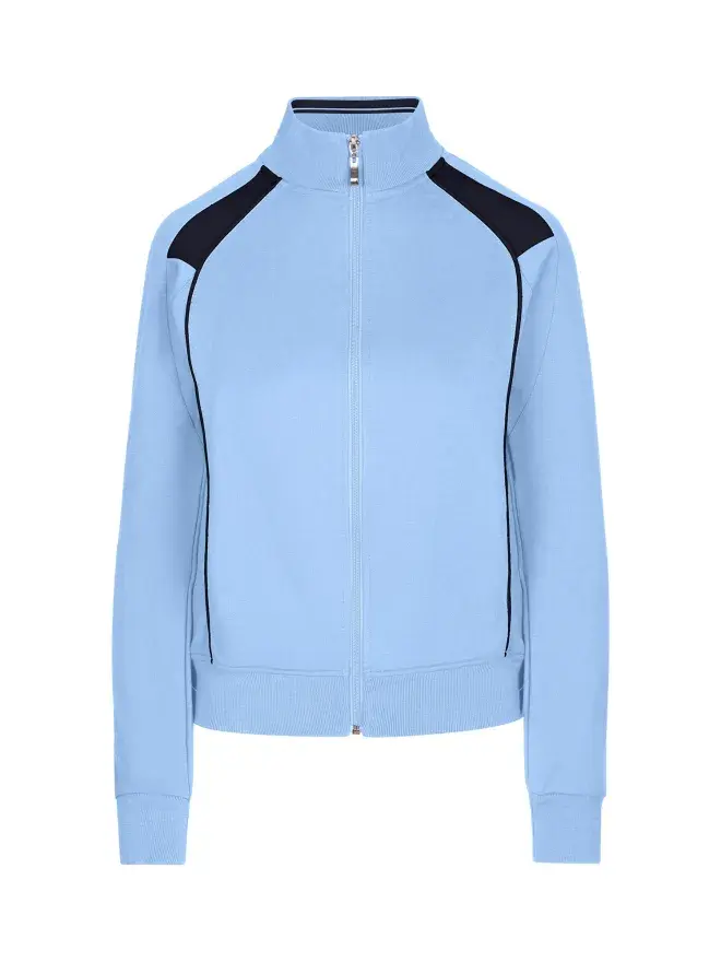 Eye-fill View product Custom Womens/Juniors Unbrushed Contrast Jacket sky blue/navy (size: 10) $39.08