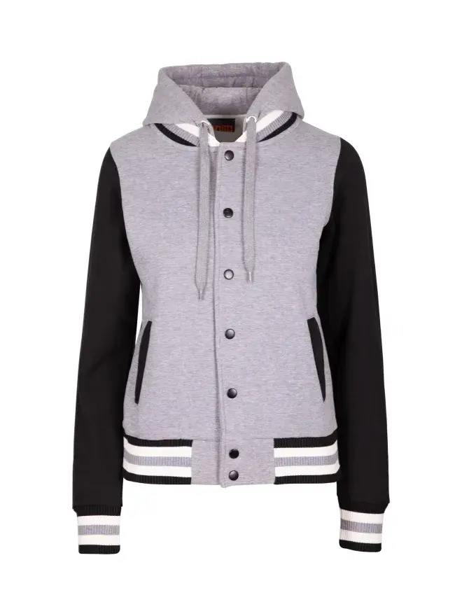 Custom Womens Varsity Jacket & Hood grey marl/black/white (size: 10)