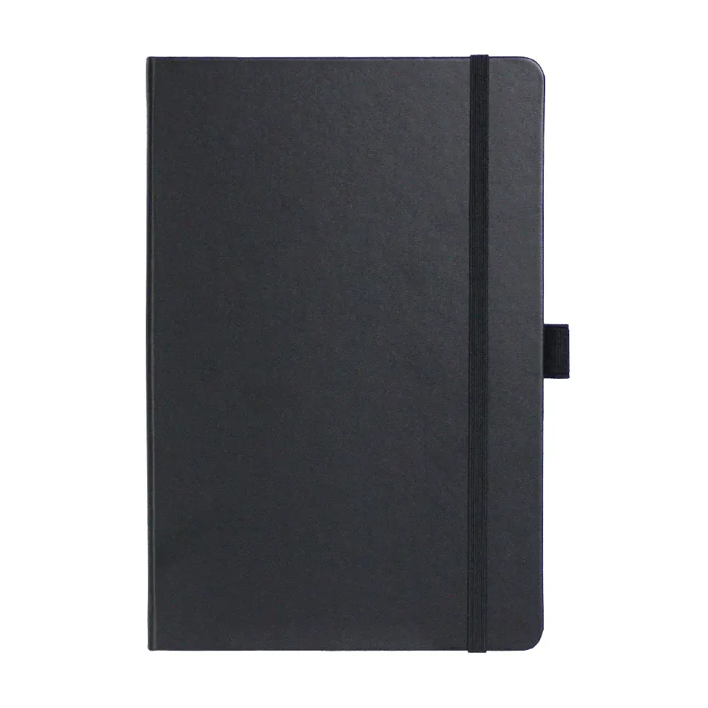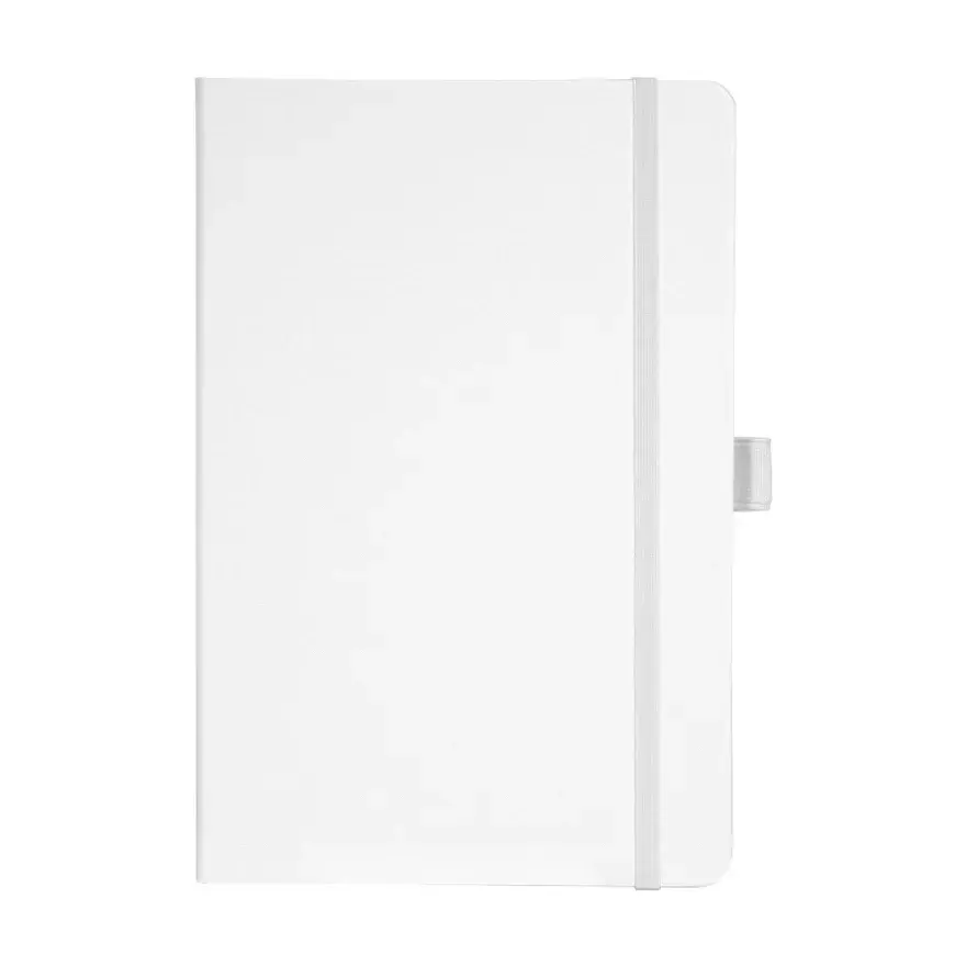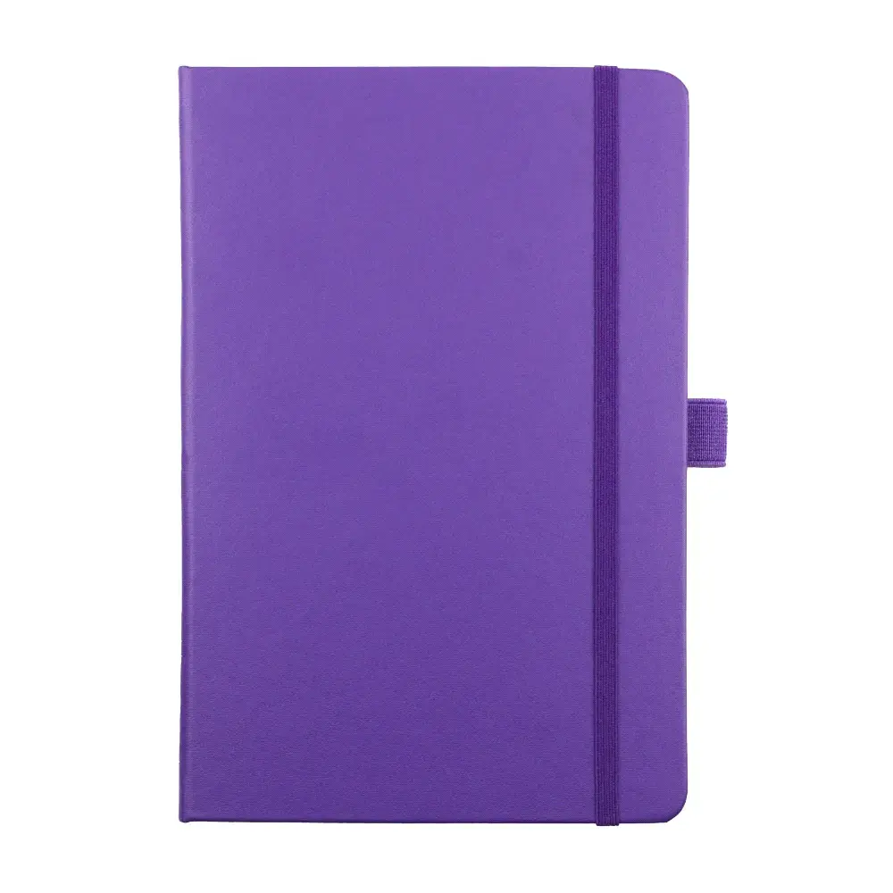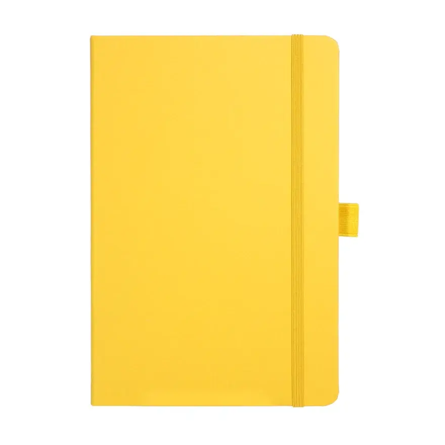 Smooth, hard-cover A5 journal with built-in elastic closure. Includes 96 sheets of lined white coloured paper. Available in 7 colours.