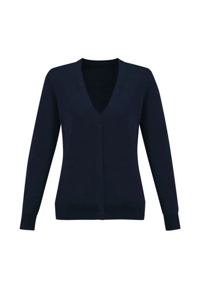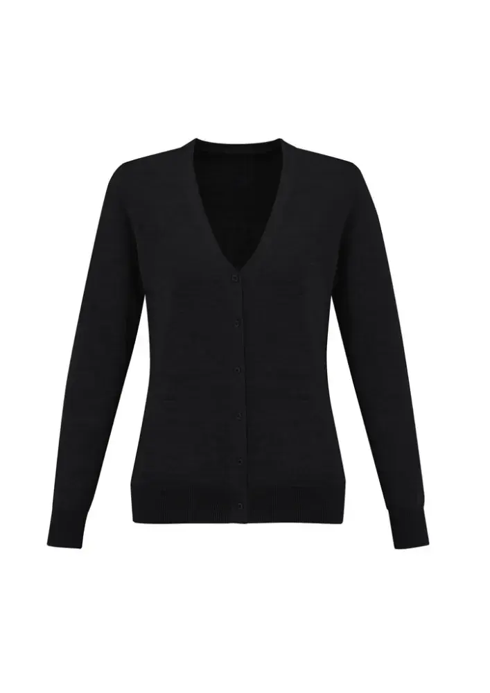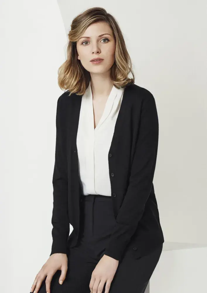 Ladies modern button-through style, hip length with softly ribbed cuff and hem