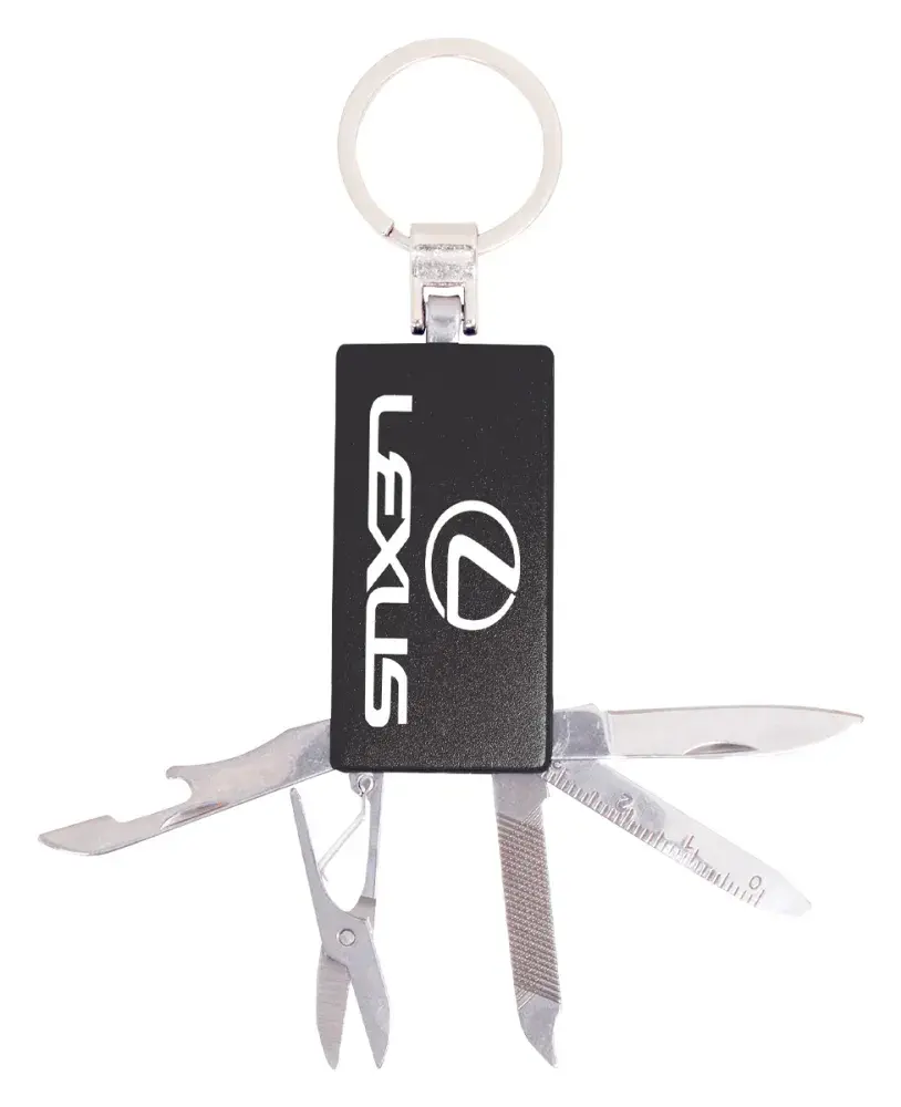 Range of engravable gift items that can be personalised to suit your requirements. This black coloured keychain with multi- tools is laserable.