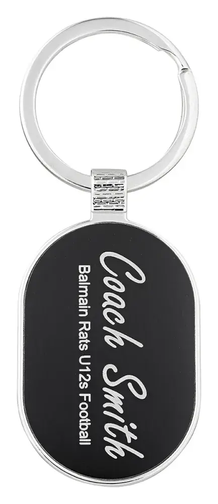 This keychain is an effective award choice, designed specifically to suit laser engraving. This solid metal keychain can showcase your text or logo engraving requirements. This item also supplied in a presentation gift box.