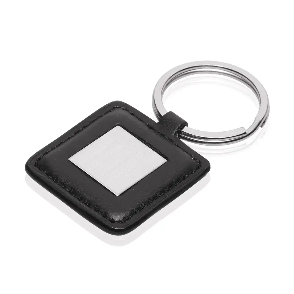 Custom Keyring Square Metal Leather Look - Black/Silver