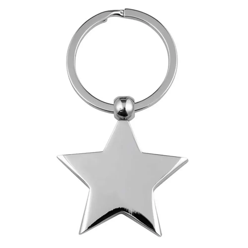 Chromed star shape keychain made of chromed zinc alloy excellent promotional item for corporate world and thin enough to keep it in pocket.