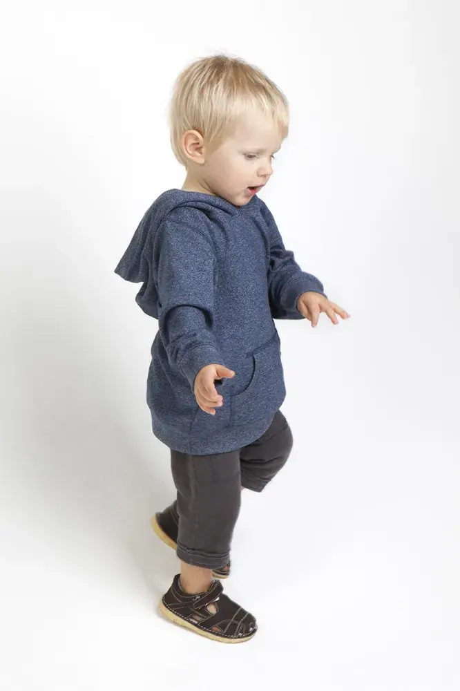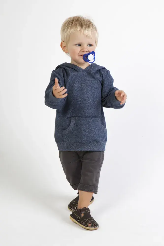 260gsm, 50% cotton 43% polyester 7% spandex This hoodie not only provides a very fashionable heather look, but at 260gsm, this is our lightest hoodie yet! These hoodies will provide a softness and comfortable fit that babies will love.