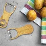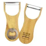 Whether you're peeling potatoes or quickly opening a drink bottle, this multi-purpose design Bamboo Peeler Bottle Opener makes it a handy addition to any kitchen. Made of natural bamboo with stainless steel feautures. Compact and easy to store in a drawer, it’s a practical solution for everyday tasks. Perfect for left and right hand use.