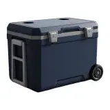 The 45L Prescott Rolling Cooler Box keeps ice cold for 72-92 hours with thick PU foam insulation, PE outer and PP inner. Its large capacity and retractable handle make it easy to transport without sacrificing style. Perfect for outdoor adventures, this cooler box combines convenience, durability, and sleek design for any trip.