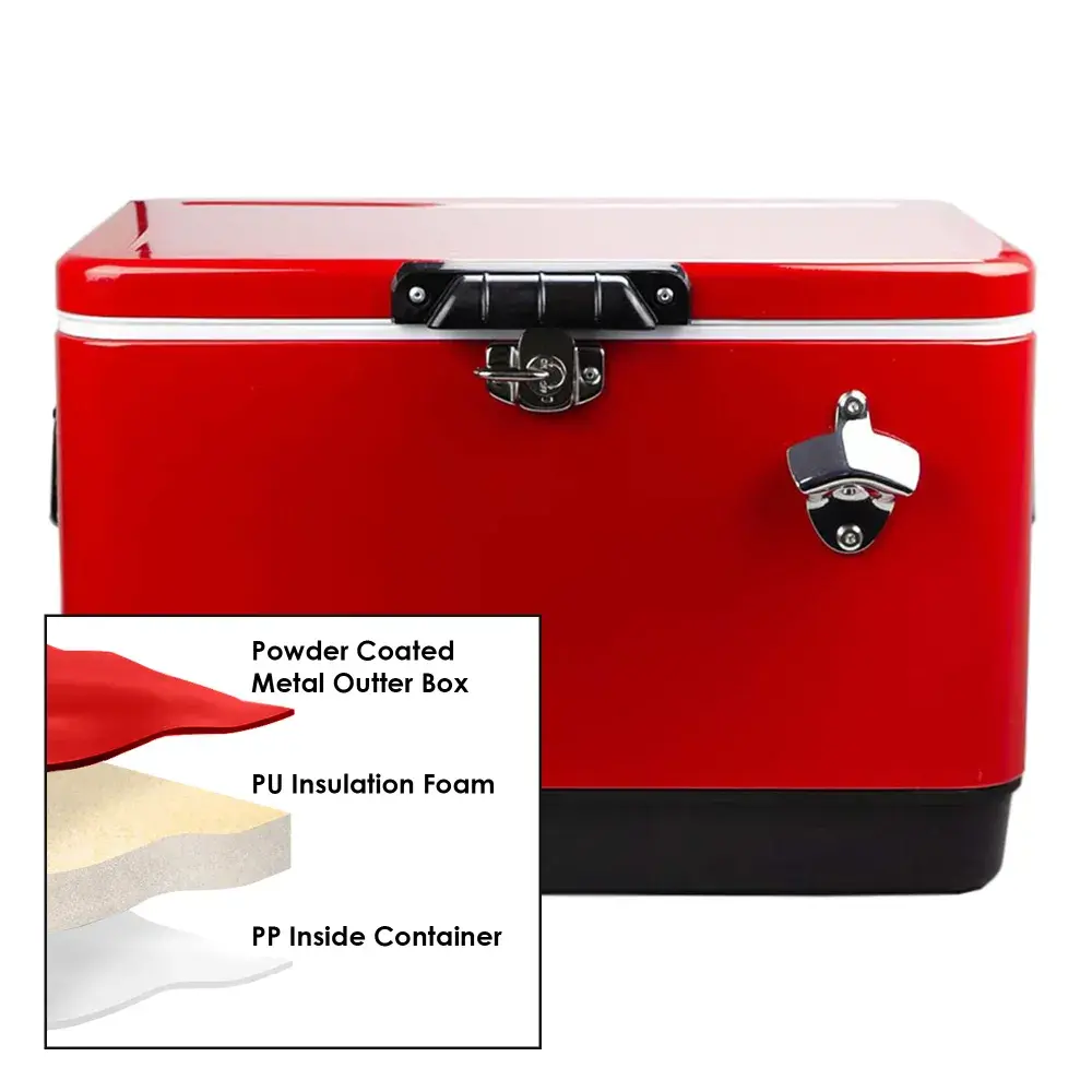The 30L Tuscon Metal Ice Cooler Box features durable powder-coated metal, PP interior, and PU foam insulation, keeping ice cold for 24-48 hours. With a built-in bottle opener and sturdy handles, it's perfect for outdoor events, picnics, or corporate promotions. Stylish, practical, and built to last.