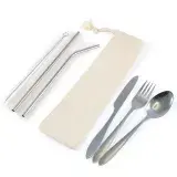 Comprehensive Set: Includes full-size knife, fork, spoon, straight straw, bent straw, and cleaning brush.