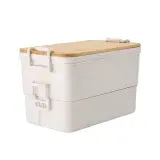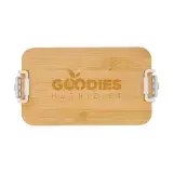 Natural bamboo lid doubles as a serving board with integrated cutlery storage (knife, fork, and spoon included).