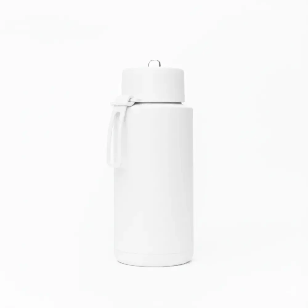 Custom 1L Stainless Steel Bottle with Silicone Handle White