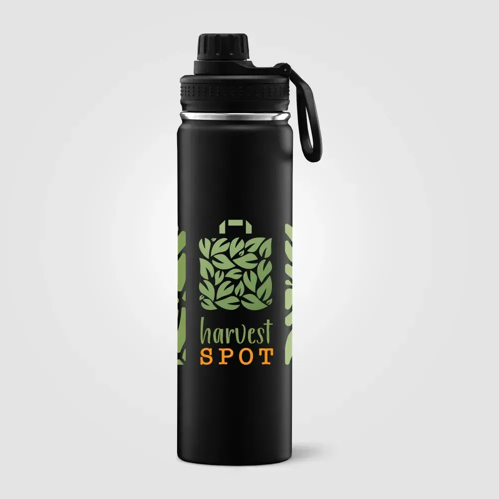 Our Alaska - 710 ml Stainless Steel Double Wall Water Bottle has a powder coating that is chip repellent and durable. Enjoy a Stainless Steel, Double wall vacuum water bottle with screw-on, leakproof lid, and carry handle. This generously sized water bottle can keep drinks cold for up to 6 hours. The Alaska bottle is a great way to help people keep hydrated, while showing off your company logo all day, every day. Customize with your 1-color silkscreen logo.