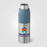 Staying refreshed on the go is easy with this Borealis Recycled Stainless Steel Twist Lid Bottle - 650 ml. Its double-wall vacuum insulation keeps drinks hot for up to 8 hours and cold for up to 10 hours. The leakproof design features a textured lid with a matte-painted top that matches the solid-coloured top section of the bottle. Crafted from 304 stainless steel with a brushed finish, this bottle is perfect for both hot and cold beverages. It is not dishwasher or microwave safe, making it ideal for handwashing after everyday use.