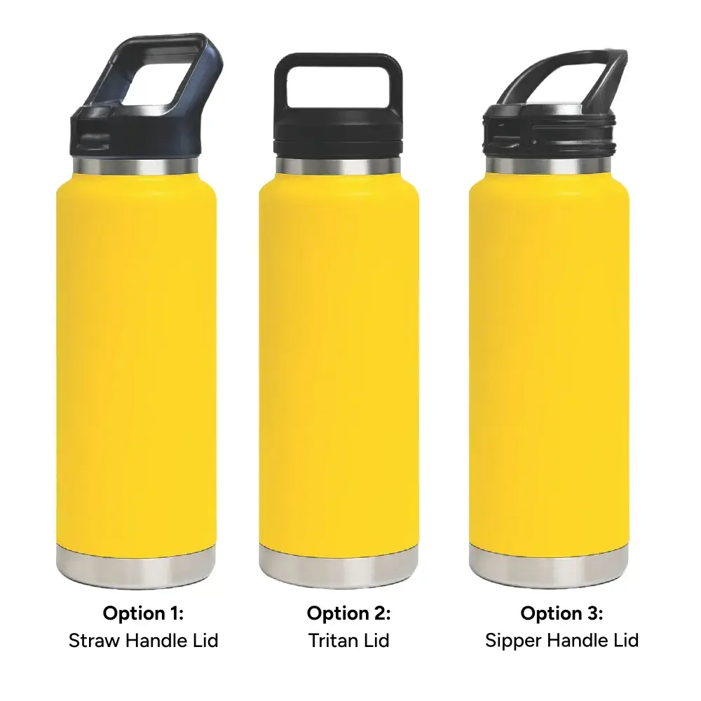 Custom HYDRO - 1L Vacuum Bottle - 3 Different Lid Options Yellow