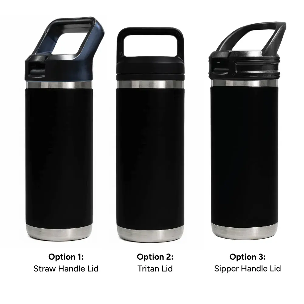 Custom HYDRO - 532ml Vacuum Bottle - 3 Different Lid Options Black
