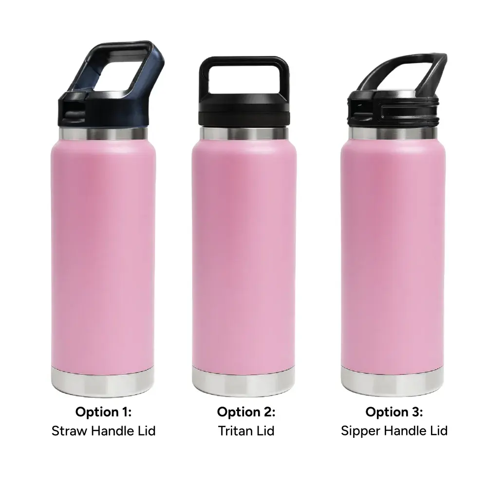 750ml capacity for all-day hydration. | Made from durable double-wall stainless steel (304 inside, 201 outside). | Vacuum insulation keeps drinks hot or cold for hours. | Leak-resistant seal ensures worry-free transport. | Available with 3 lid options – Straw Handle Lid (flip-up straw for easy sipping), Tritan Twist-On Lid (sturdy carry handle for portability), and Sipper Handle Lid (practical handle for effortless drinking).