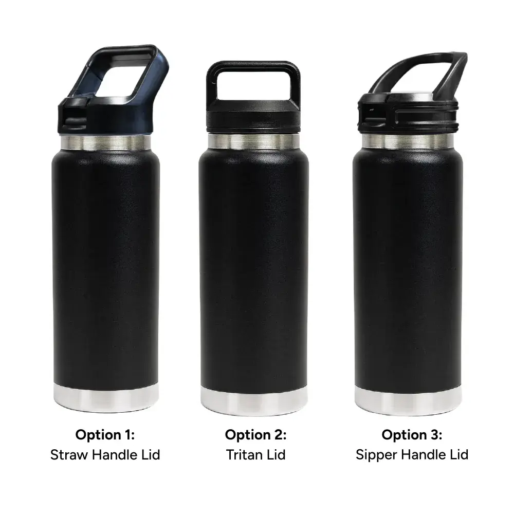 Custom HYDRO - 750ml Vacuum Bottle - 3 Different Lid Options Black