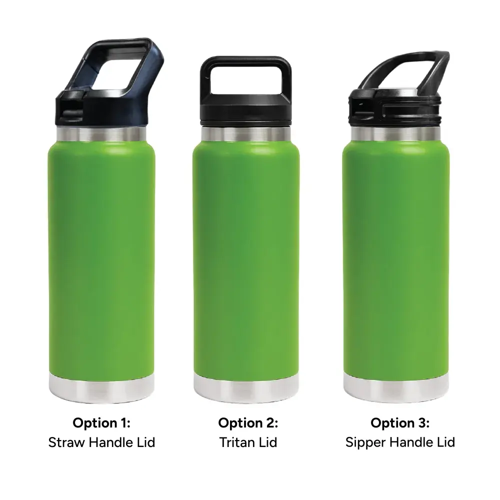 Custom HYDRO - 750ml Vacuum Bottle - 3 Different Lid Options Green
