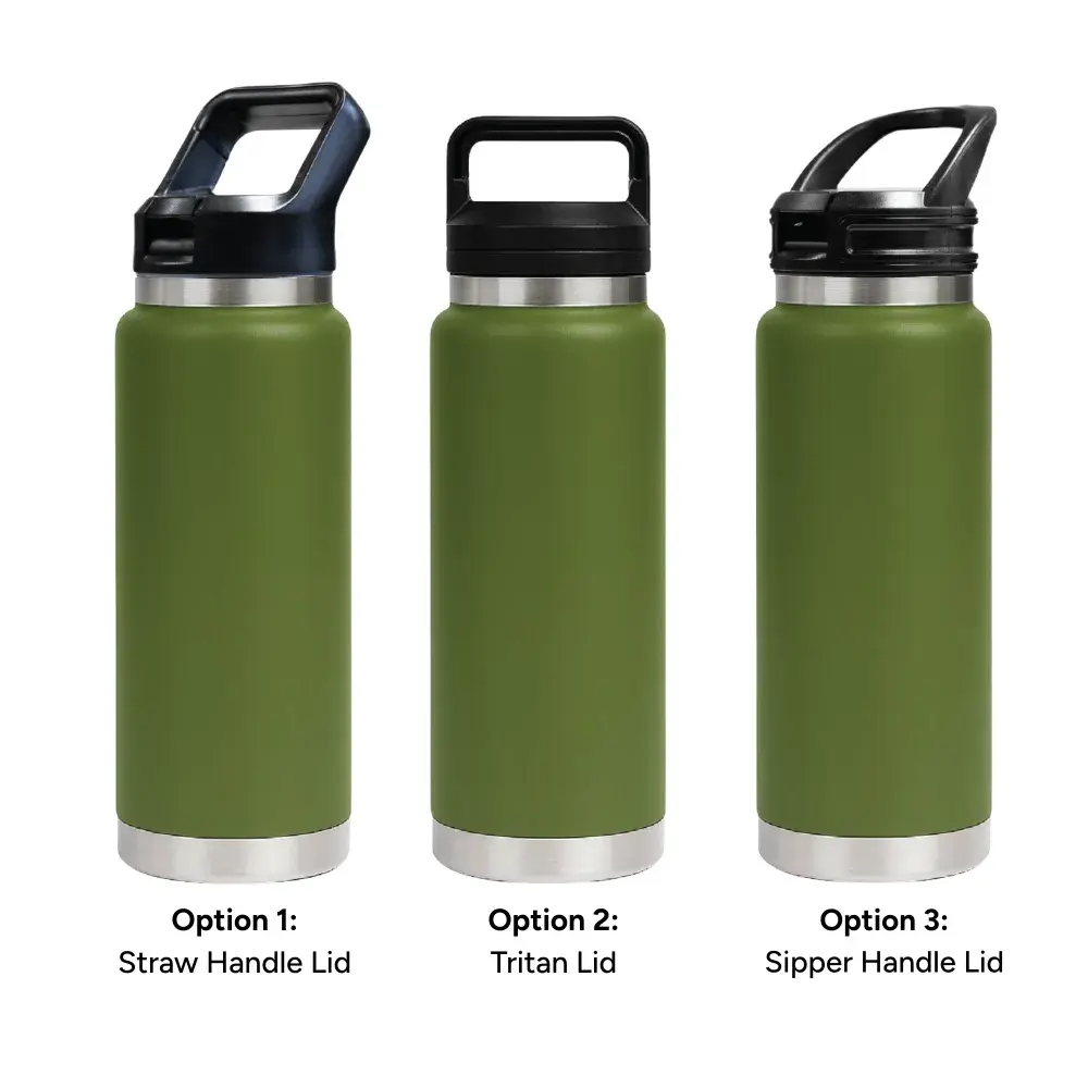 Custom HYDRO - 750ml Vacuum Bottle - 3 Different Lid Options Olive