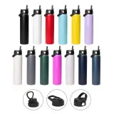 750ml capacity ideal for all-day hydration. | Made from 304 stainless steel interior and 201 stainless steel exterior. | Double-wall vacuum insulation keeps drinks cold for 48hrs and hot for 12hrs. | Durable, rust-resistant, and BPA-free for long-lasting, safe use. | Sleek, modern design fits easily in bags, desks, or cup holders. | Available with 3 lid options – Screw Cap Lid, Flip Top Lid, and Rotating Carry Handle Lid.