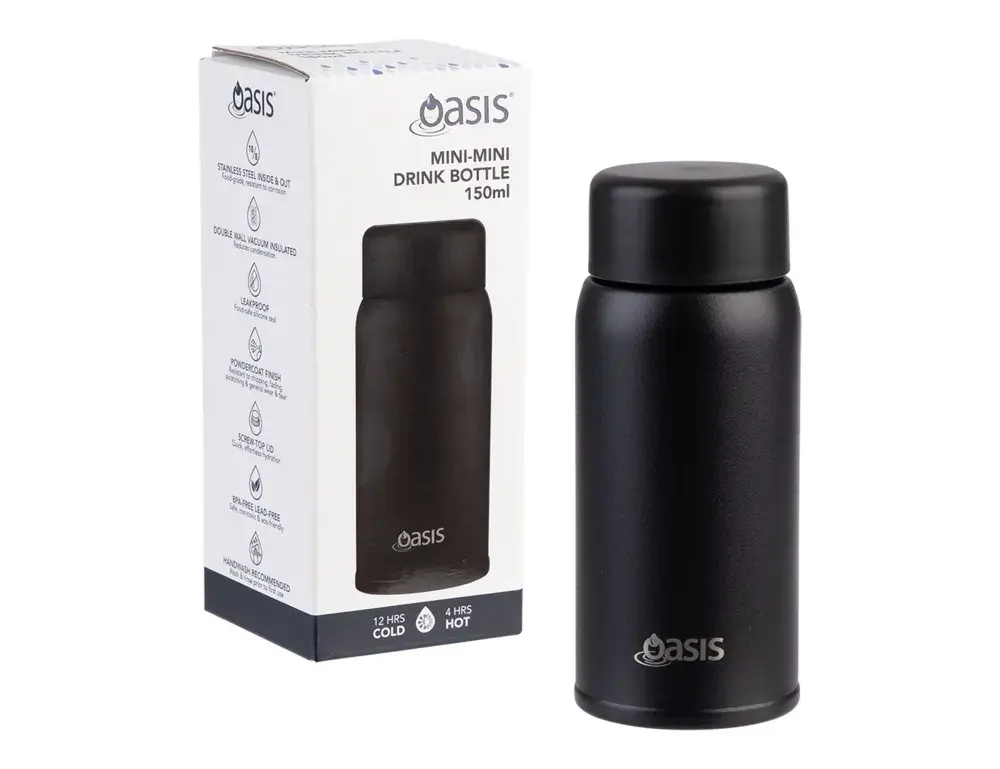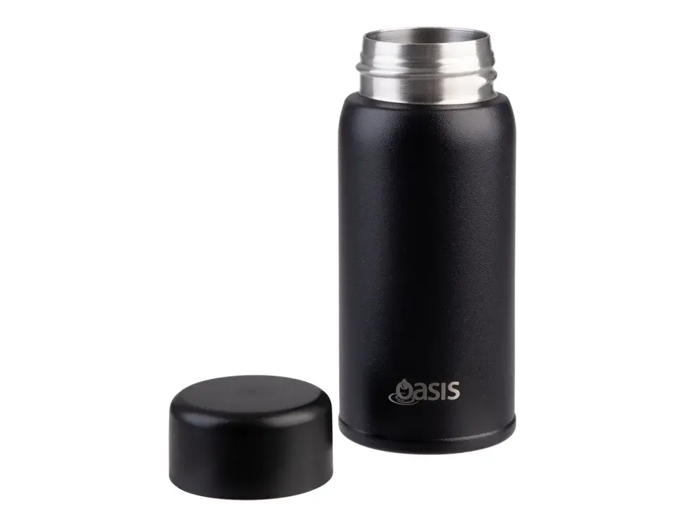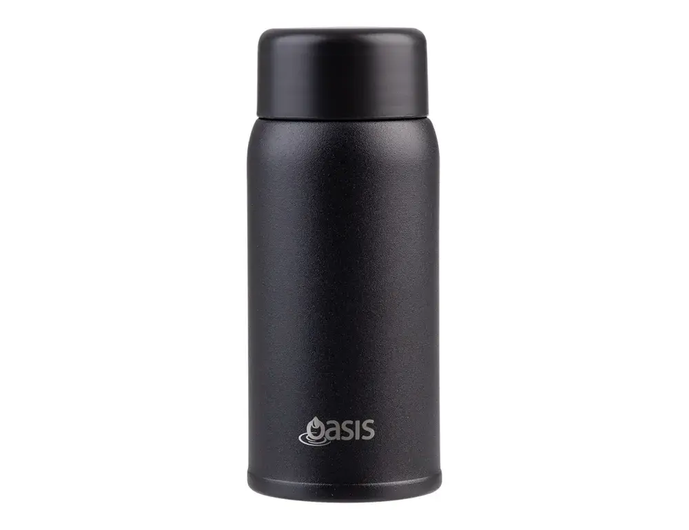 Small in size, big on performance. The Oasis Mini-Mini drink bottle is designed for convenience on the go, keeping your drinks at the perfect temperature in a sleek, compact form. Crafted from premium 18/8 stainless steel inside and out, it features double wall vacuum insulation to keep beverages cold for up to 12 hours or hot for up to 4. A durable powdercoat finish resists everyday wear, while the leakproof screw-top lid ensures worry-free hydration wherever you take it. With its minimalist design and eco-friendly construction, this bottle is the perfect pocket-sized companion for daily life.