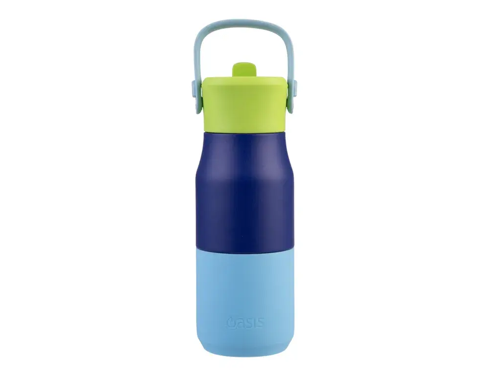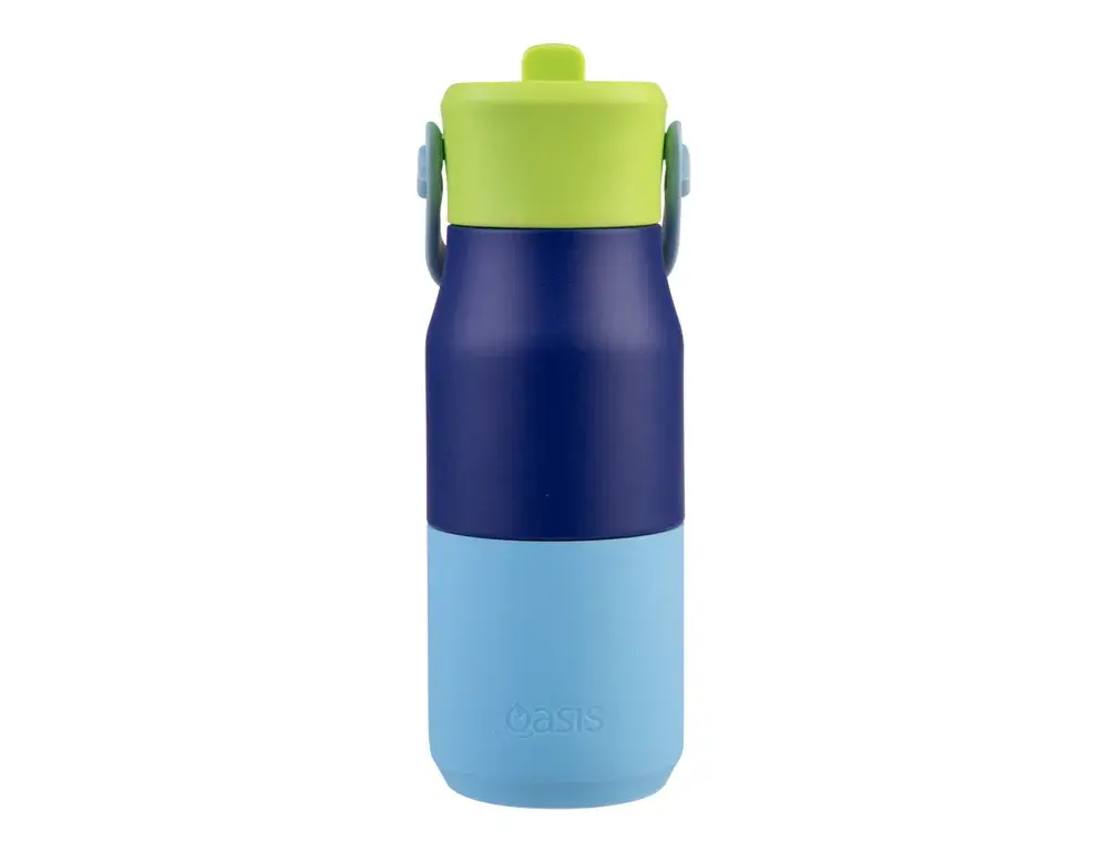 Stay cool and sip in style with the Oasis stainless steel double wall insulated 'Jnr' drink bottle. Designed for younger sippers and built for everyday adventures, this 400ml bottle keeps drinks cold for up to 12 hours with its vacuum-insulated 18/8 stainless steel body. The flip-up sipper spout ensures easy, mess-free hydration, while the detachable handle allows for convenient carrying or attachment to a bag. Finished with a durable powdercoat and a built-in silicone bumper for added protection, it's a vibrant and practical choice for active kids.