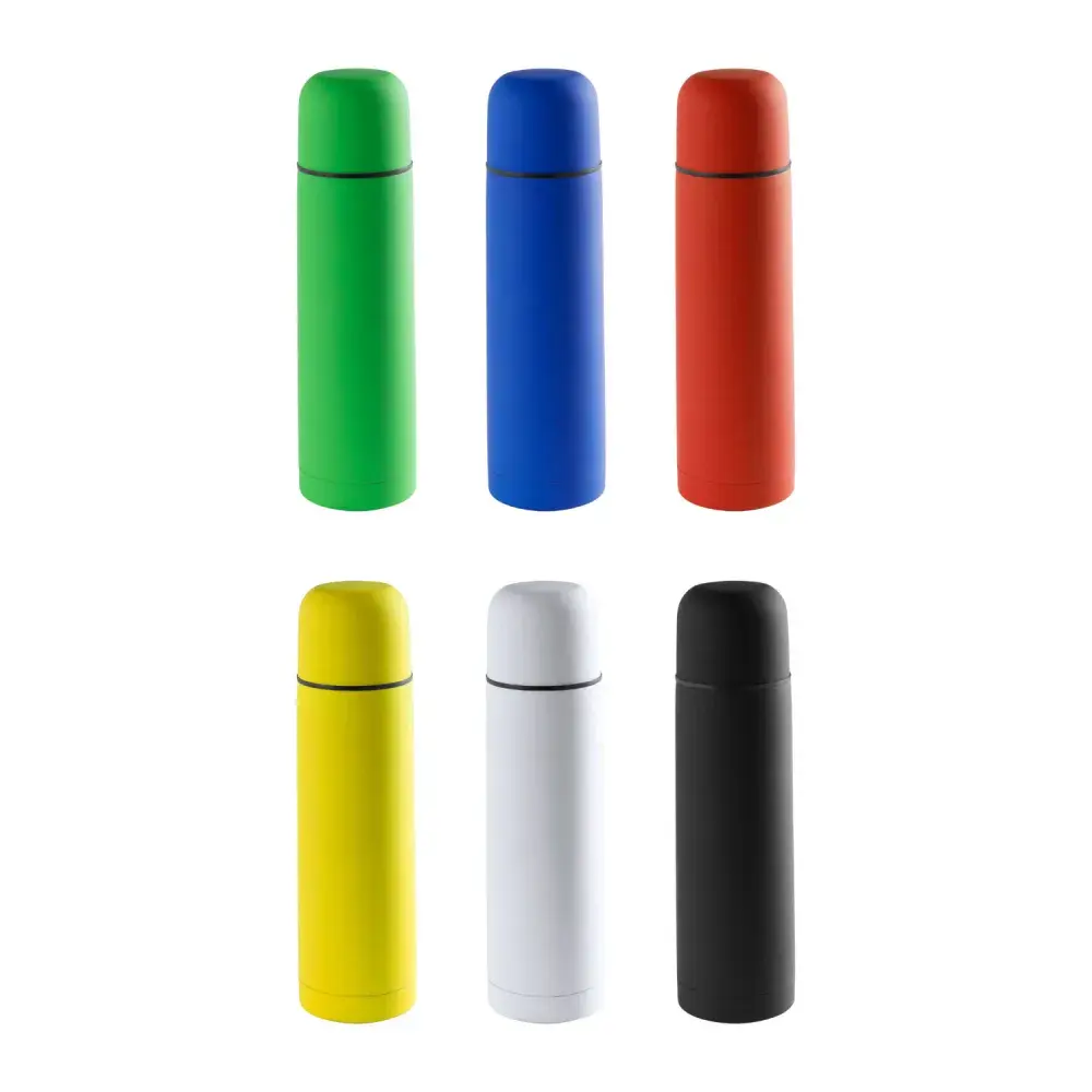 Stainless steel double-wall construction for superior insulation. | 500ml capacity ideal for hot and cold drinks. | Rubberized finish offers a sleek look and comfortable grip. | Durable, reusable, and eco-friendly. | Supplied in a protective cardboard box for easy gifting. | Perfect for corporate branding, events, or personal use.