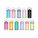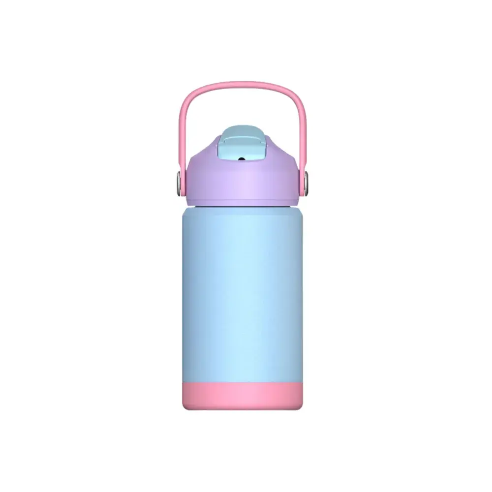Made from durable 304 stainless steel with protective silicone base. | Foldable straw lid for easy, spill-free drinking. | Double-wall insulation keeps drinks hot or cold for 6–10 hours. | 350ml capacity – ideal for kids. | Rotary digital print for vibrant logo display. | Perfect for school, recess, and sports games.