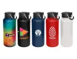 Springfield 1lt Vacuum Combo Lid Bottle is a large capacity top-tier, BPA-free insulated bottle built for versatility and convenience. With its pro-grade 18/8 double wall stainless steel construction and internal copper lining, it keeps drinks cold for up to 12 hours. The innovative combo lid features a fold-out sipper spout with straw and a quick-access flip lid, giving you flexible drinking options. A folding metal carry handle with a soft-touch silicone grip makes it easy to take on the go. Finished in a tough matt powder coating and available in four stock colours, the Springfield comes packaged in an eco-friendly natural gift box.