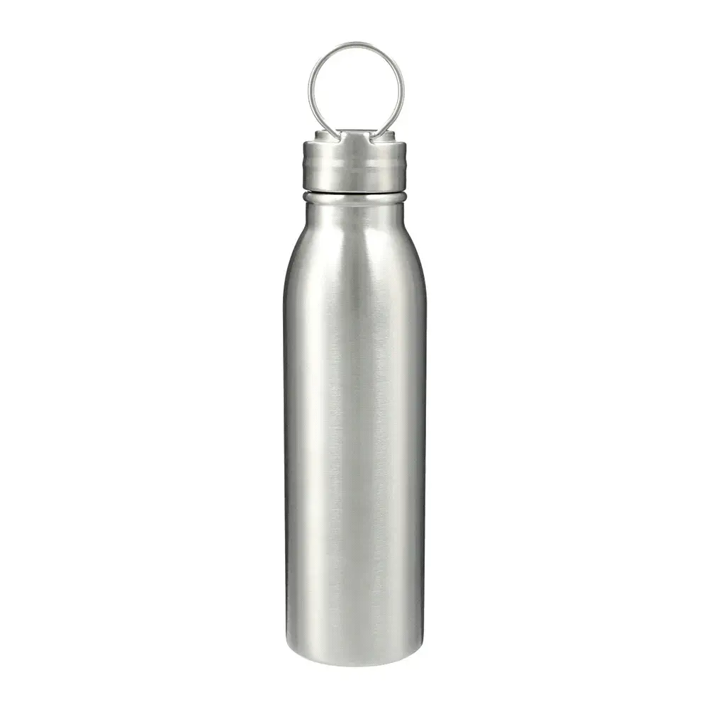 The Vida stainless sports bottle features sturdy single-wall construction and a stainless steel screw-on lid with durable metal handling loop. Hand wash only and follow any included care guidelines. 710ml capacity.