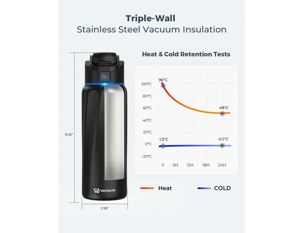 No more guesswork - built-in tracking technology logs your daily water intake using advanced sensors and syncs effortlessly with the free companion app. Visualize your progress, set personal targets, and stay motivated every day.