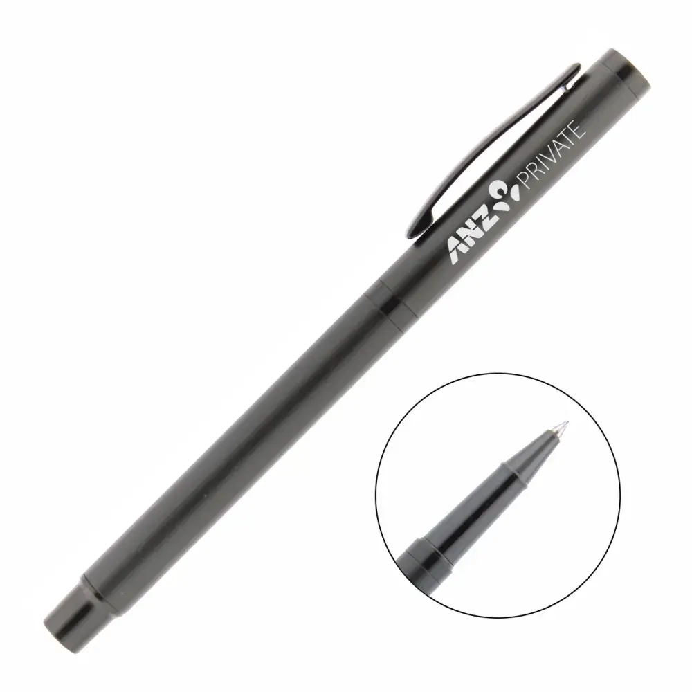 Matt black metal barrel with shiny black trim. Can be laser engraved for a classy result.
