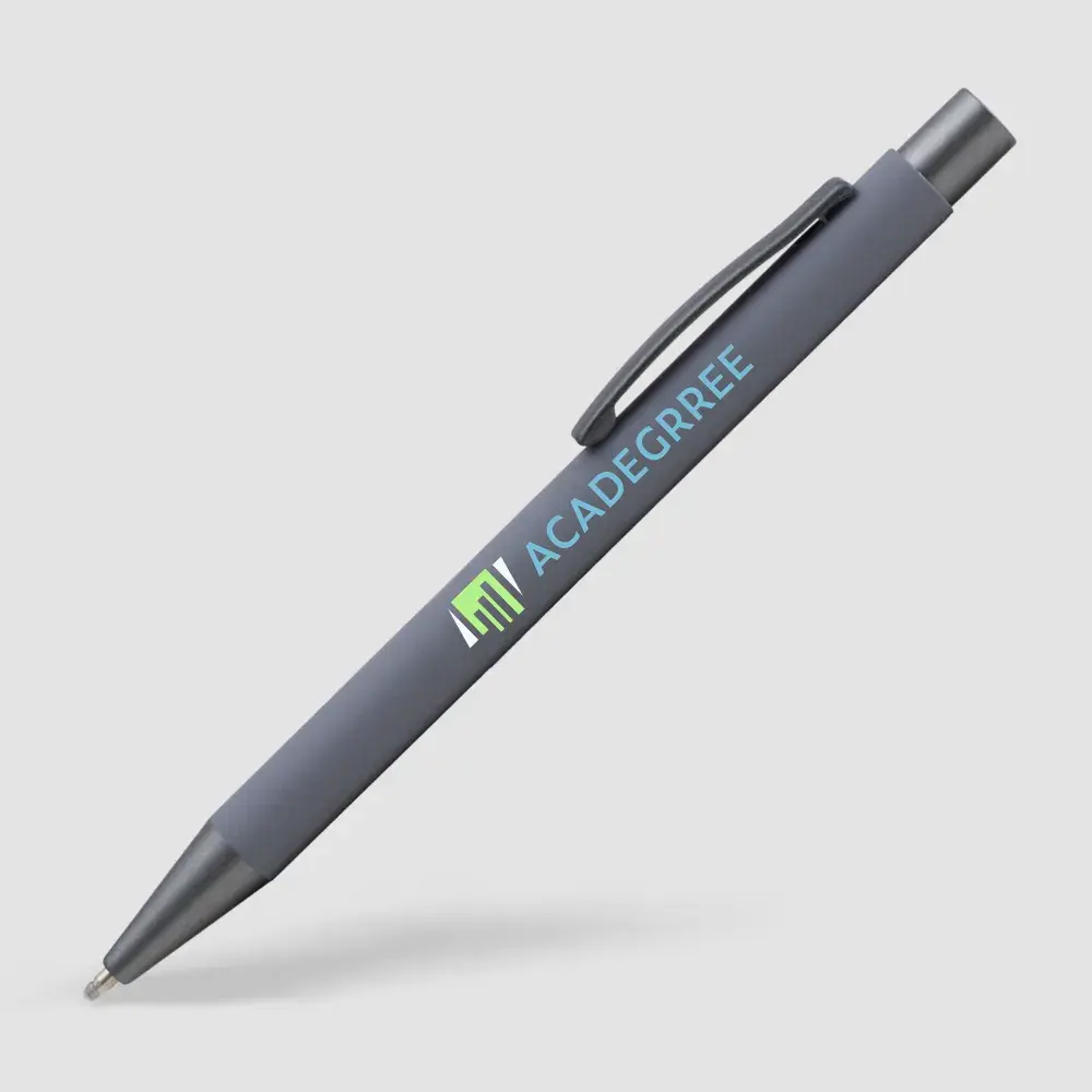 Best-selling, soft-touch metal pen with luxury tactile feel and contemporary gunmetal trim. Laser engrave to reveal a striking silver mirror finish or digitally print full-colour with ColourJet. The Bowie is fitted with an Eversmooth elite® German ink refill for a noticeably smoother writing experience. Choice of blue or black writing ink. Available in 15 fabulous barrel colours.