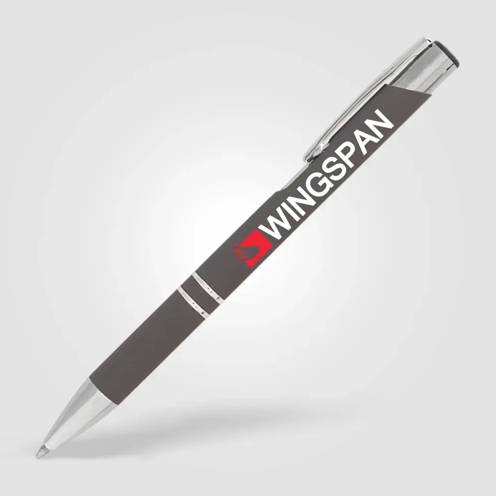 Best-selling, tactile, soft-touch ballpoint pen with rubberised aluminium barrel and shiny chrome trim. Supplied with a premium Eversmooth elite® German ink refill with a choice of blue or black writing ink. Available in an impressive range of 18 striking colour options.