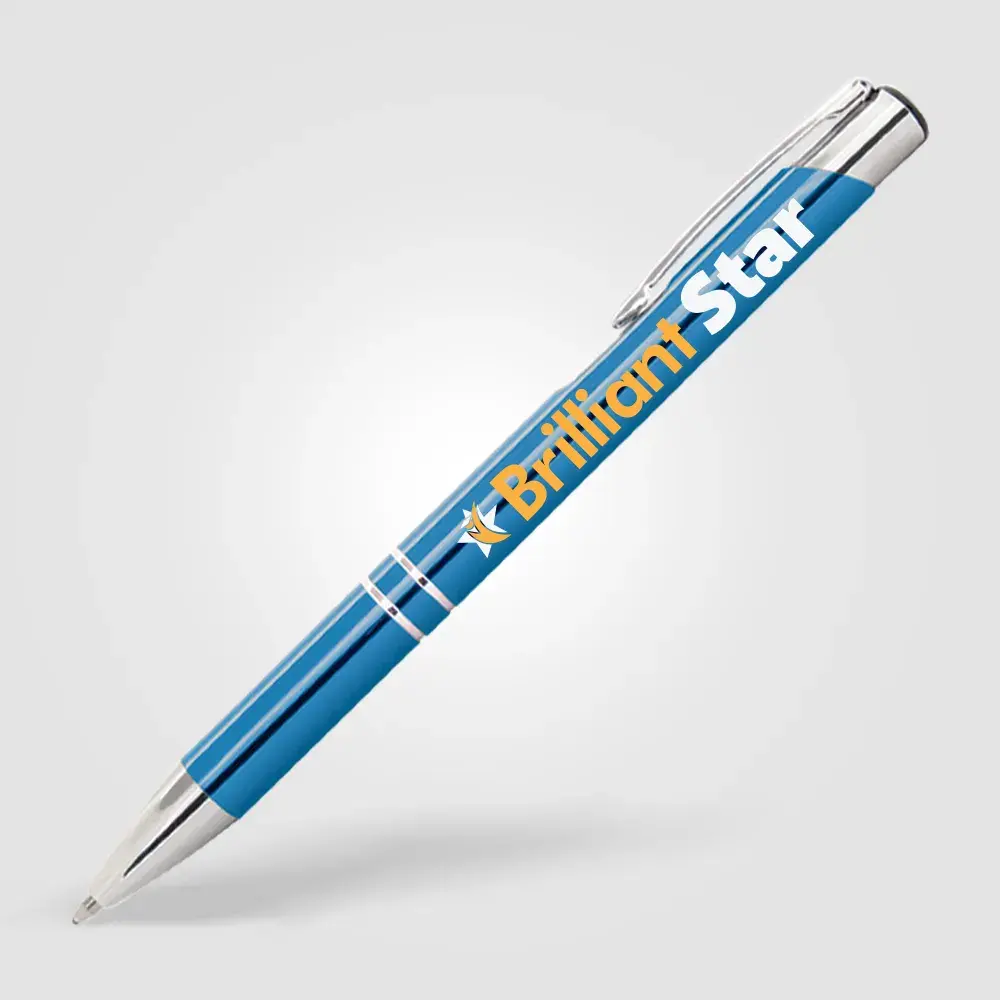 Best-selling metal ballpen with premium Eversmooth elite-German ink refill. Choice of blue or black writing ink. Available in 9 classic glossy barrel colours with shiny chrome trim. The 360° rotary engraving option is ideal for intricate crests and finer detail or you can draw attention to a full-colour logo using digital ColourJet print.