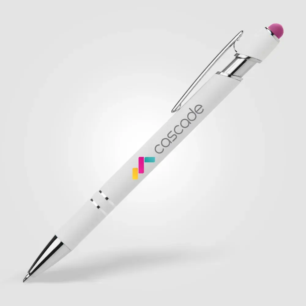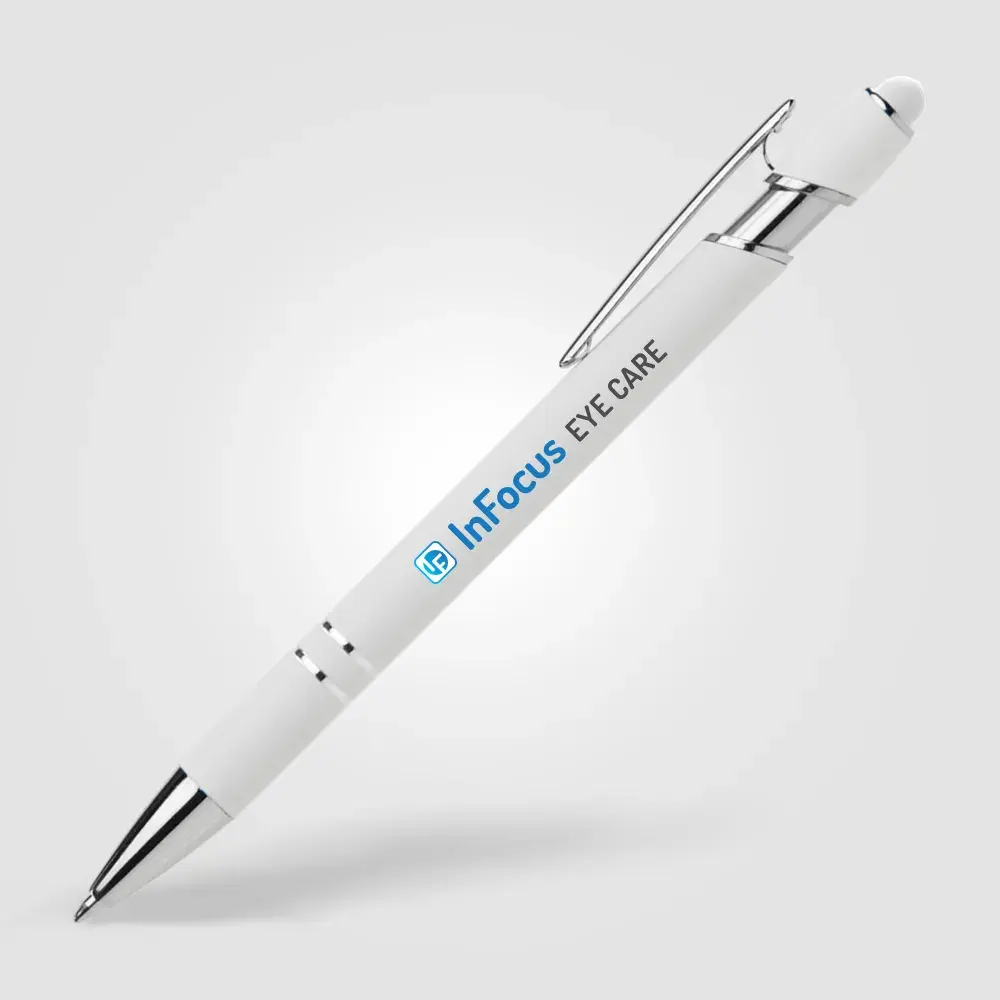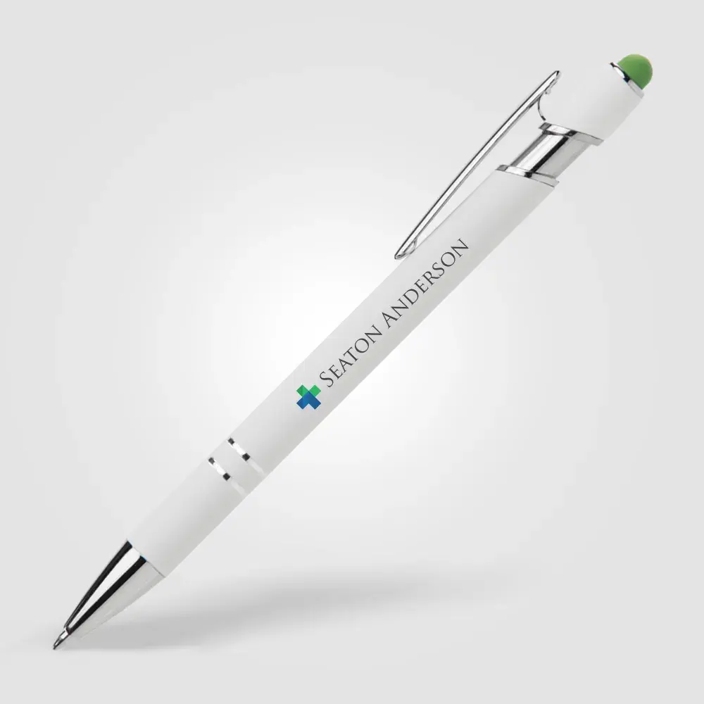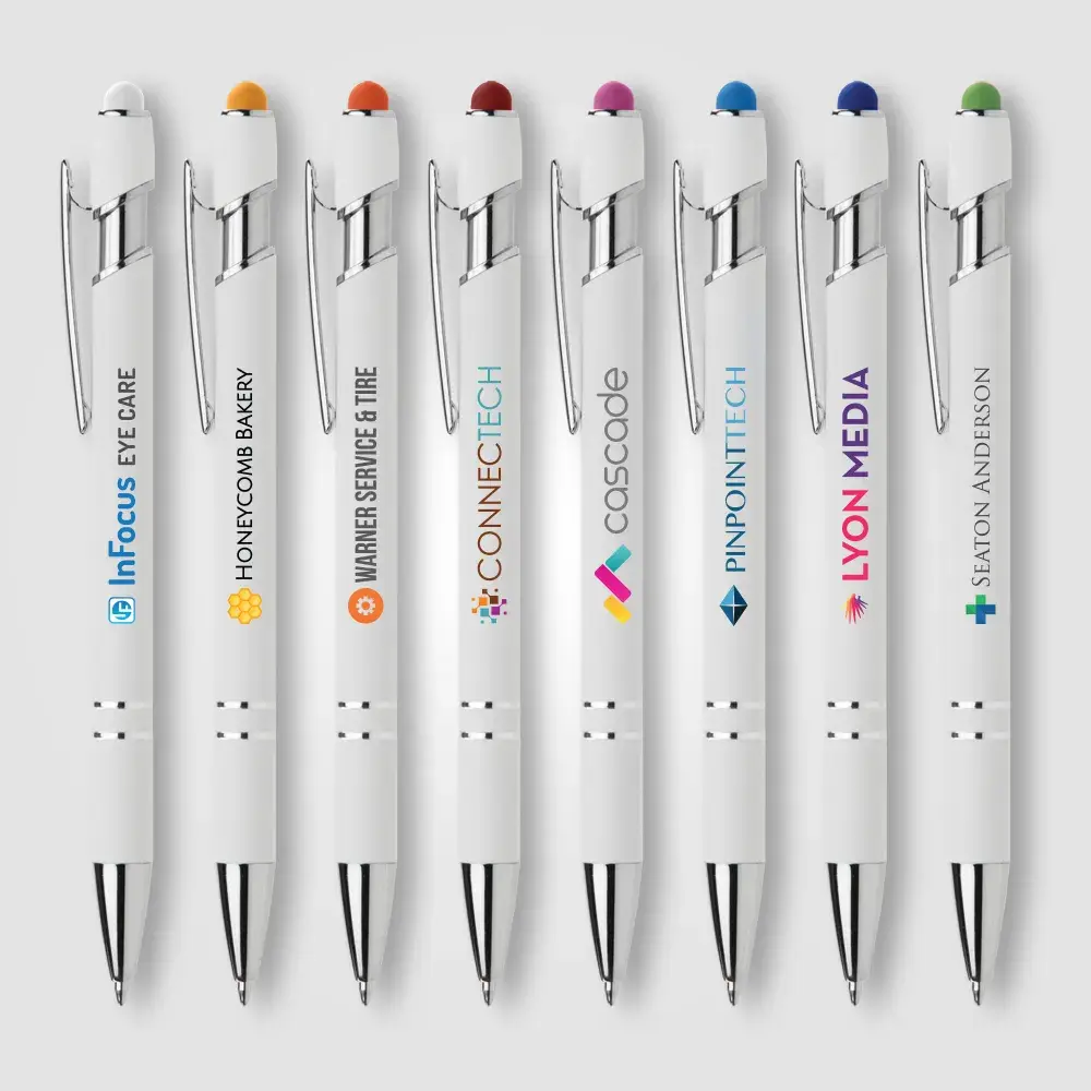 Custom Ellipse Softy White Barrel Metal Pen w/ Stylus