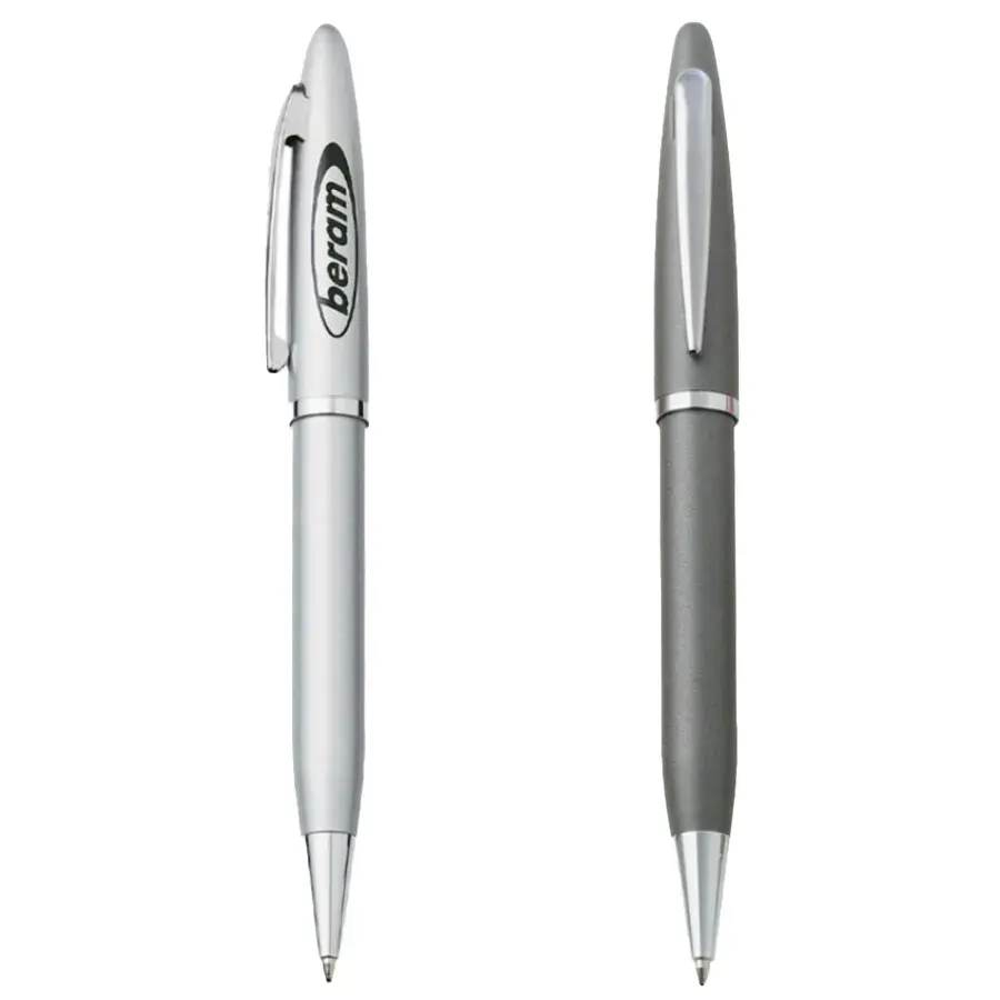 The Eva Pen is a sleek twist-action pen with a matte-coloured barrel and glossy silver trim, offering a smooth writing experience with its black ink refill. Perfect for adding a touch of sophistication to your everyday writing!