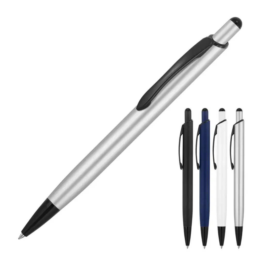 The Bella Matte Black Trim Pen presents a sharp, corporate style with smooth, curved lines. A click action, retractable ballpoint delivers black ink from a smooth, quality black ink medium point Parker type refill. This metal promotional pen can be printed with your client's logo or brand to create a fine gift or, alternatively, laser engraved for an even classier result.