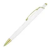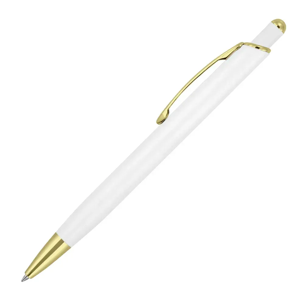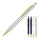 The Bella Matte Gold Trim Pen presents a sharp, corporate style with smooth, curved lines. A click action, retractable ballpoint delivers black ink from a smooth, quality black ink medium point Parker type refill. This metal promotional pen can be printed with your client's logo or brand to create a fine gift or, alternatively, laser engraved for an even classier result.
