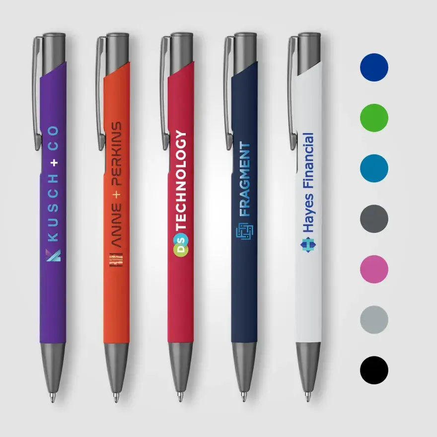 The Joy Metal Ballpoint Pen presents a sharp, corporate style with smooth, straight lines. A click action, retractable ballpoint delivers black ink from a smooth, quality Parker type refill - 4,000m. This metal promotional pen can be printed with your client's logo or brand to create a fine gift.
