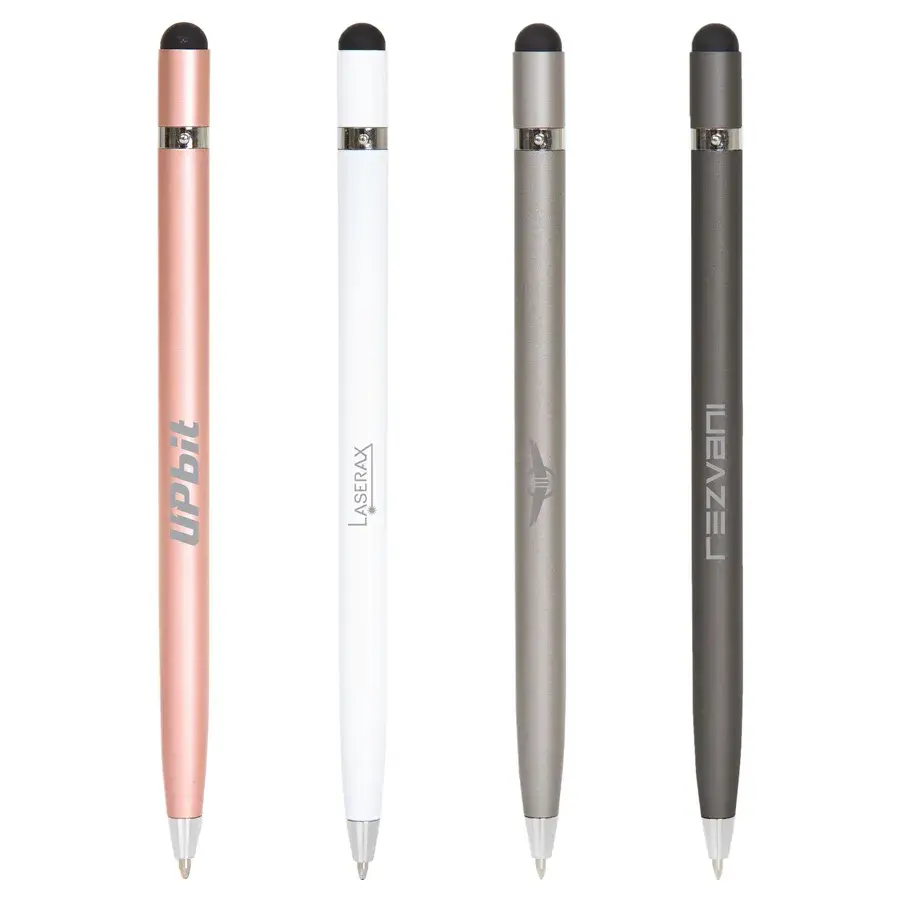 Twist-action pen featuring a sleek aluminium barrel with clean, modern lines. Designed for versatility, it includes a stylus tip for use with tablets and smartphones. Equipped with a high-quality black German ink refill and a TC ballpoint for a smooth writing experience. Each Infinity Pen is presented in a slide-out white box for a refined touch.