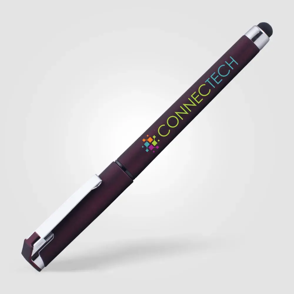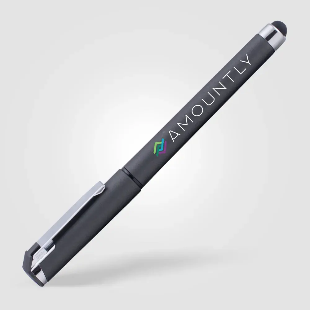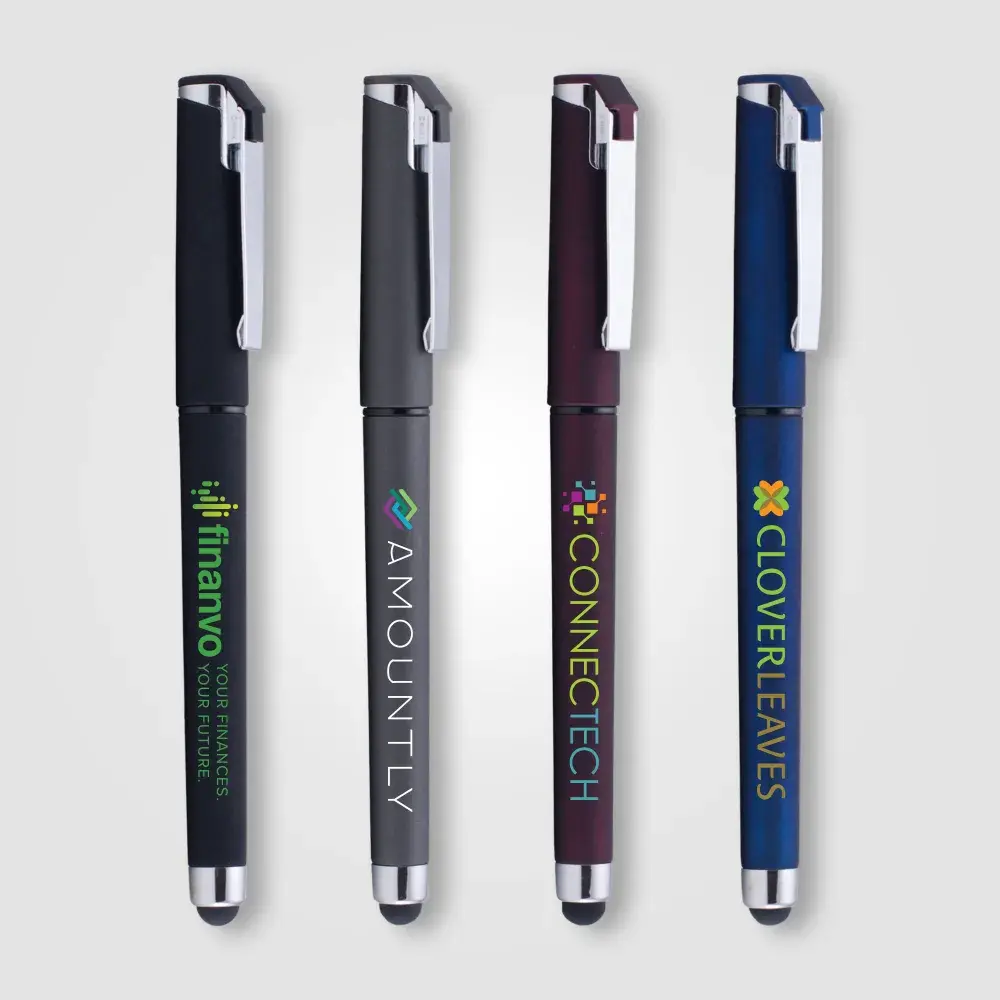 The Islander Softy Gel Classic w/Stylus pen combines two customer-favourites: a gel pen and a soft-touch rubberized finish. This stylish capped pen comes in classic executive colours with a black rubberized grip and chrome trim and accents. With smooth-writing gel ink and helpful touchscreen stylus, this pen is sure to be a favourite. A great item for trade shows, job fairs, and so much more. Customize with your logo, imprinted with 1-colour silkscreen or with FullColour ColourJet.